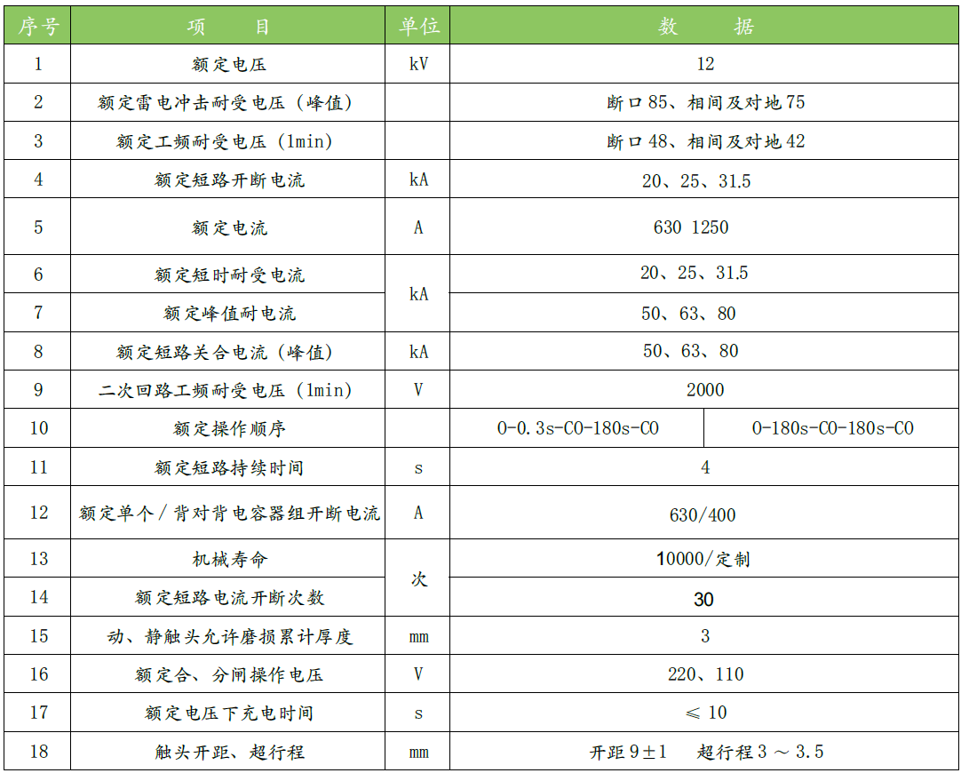 断路器符合GB/T 1984《高压交流断路器》、JB/T3855 《高压交流真空断路器》、DL/T 403《12~40.5kV户内高压真空断路器订货技术条件》及IEC62271-100等标准的相关要求。